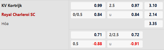 Sàn giao dịch châu Á ghi nhận mức kèo Sporting Charleroi chấp 1/4 trái, tỷ lệ mà đội bóng này rất có duyên khi đối đầu với Kortrijk.