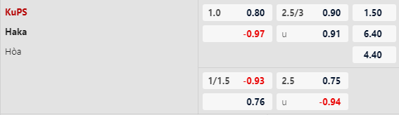 Nhà cái niêm yết mức cược KuPS chấp 1 hòa cả trận. KuPS đang thi đấu thăng hoa trong năm 2024. Họ vẫn bất bại với 8 trận thắng và 4 trận hòa. Vì vậy, đoàn quân HLV Jani Honkavaara đang hơn VPS xếp sau hai điểm và hơn đội được cho là mạnh nhất Phần Lan - HJK 6 điểm. KuPS đang có 4 chiến thắng liên tiếp. Ở trận trước, họ đã giành chiến thắng 4-1 trên sân nhà trước AC Oulu.