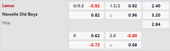 Thông tin tỷ lệ Lanus vs Newell's Old Boys: