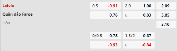 Thông tin tỷ lệ kèo Latvia vs Faroe: