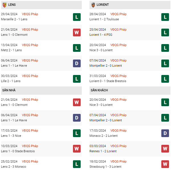 - Trên sân nhà, Lens thắng 3, thua 4 trước Lorient.