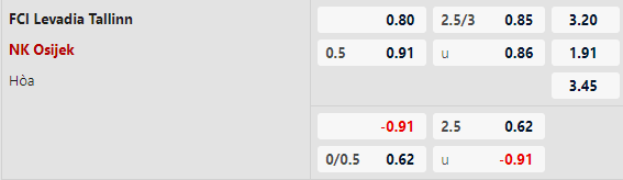Đã có 6 bàn thắng được ghi trong trận lượt đi, Levadia Tallinn không còn gì để mất nhiều khả năng sẽ chơi tất tay ở trận này. Trong khi đó Osijek đều ghi được bàn trong 5 trận đấu gần đây. Lót Tài là rất sáng.