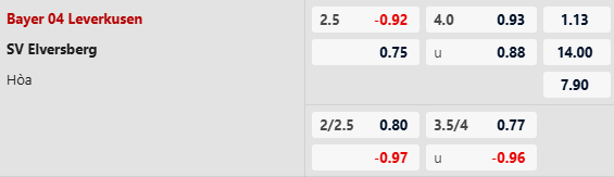 Thông tin tỷ lệ kèo Leverkusen vs Elversberg: