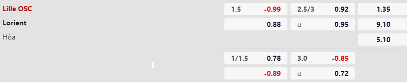 Thông tin tỷ lệ kèo Lille vs Lorient: