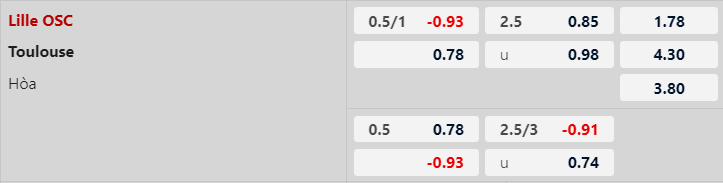 Thông tin tỷ lệ kèo Lille vs Toulouse: