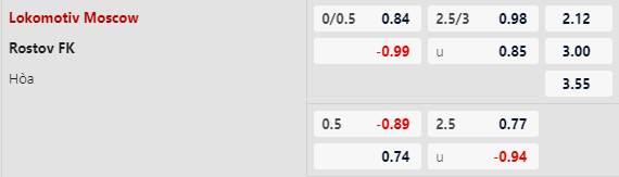 Thông tin tỷ lệ Lokomotiv Moscow vs Rostov: