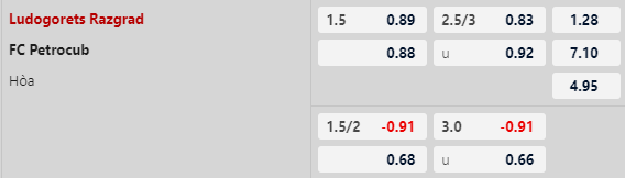 Thông tin tỷ lệ kèo Ludogorets vs Petrocub: