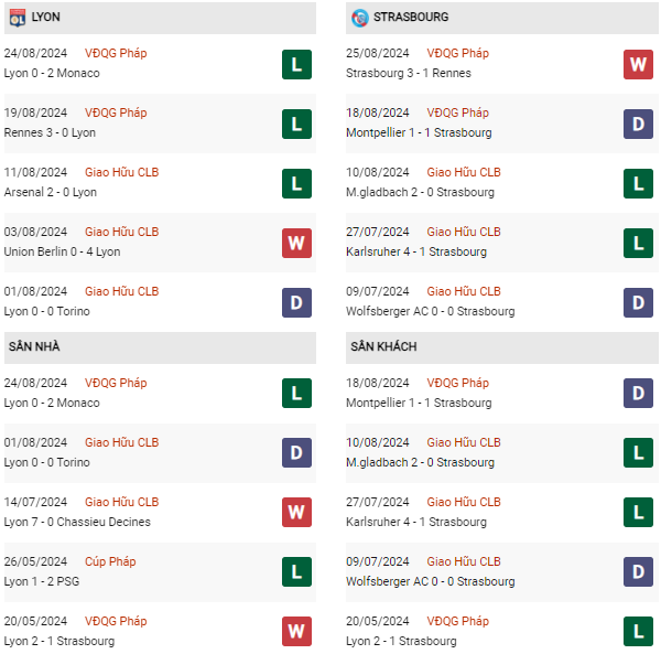 - Trên sân nhà, Lyon thắng 6, thua 2 trước Strasbourg.