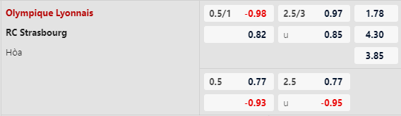 Lyon có thể đã bắt đầu mùa giải với 2 trận thua liên tiếp, nhưng họ có thành tích khá tốt trước Strasbourg, đội mà họ đã đánh bại 5 lần trong 10 chạm trán gần nhất, chỉ thua 2 trận. Ngoài ra, Strasbourg có phong độ kém trên sân khách trong một thời gian khá dài. Họ có chuỗi 8 trận không thắng và đã thua 6 trận trong giai đoạn đó. Với tỷ lệ Lyon chấp Strasbourg 3/4 bàn cả trận, kèo trên là sự lựa chọn tốt nhất.
