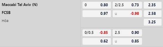 Thông tin tỷ lệ kèo Maccabi Tel Aviv vs FCSB: