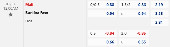 Thông tin tỷ lệ Mali vs Burkina Faso: