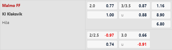 Malmo khó trở thành mã đầu tư đáng tin khi thắng kèo có 1 lần, hòa 1 và thua 3 kèo ở 5 trận đấu mới đây có cược chấp. Bên kia sân, KI Klaksvik đem tới cảm giác an toàn khi thắng kèo 3 trận đấu gần nhất.