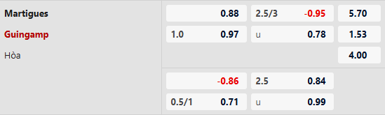 Thông tin tỷ lệ kèo Martigues vs Guingamp: