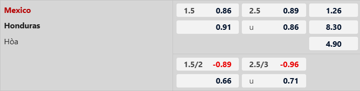 Thông tin tỷ lệ Mexico vs Honduras: