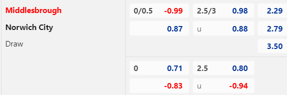 Kèo châu Á Middlesbrough chỉ chấp đồng banh cùng điểm bỏ, mức thấp hơn lần tiếp Norwich trên sân nhà mới nhất.