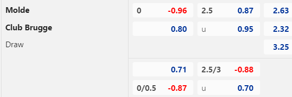 Thông tin tỷ lệ kèo Molde vs Club Brugge: