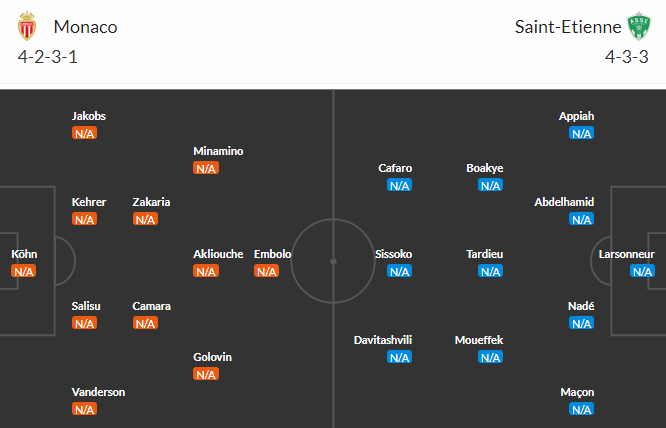 Thông tin lực lượng Monaco vs Saint-Etienne: