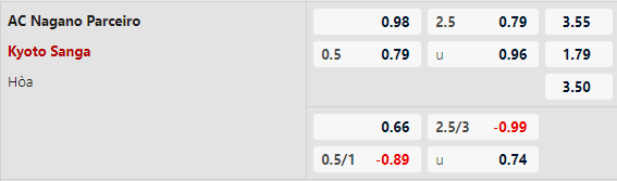 Thông tin tỷ lệ Nagano Parceiro vs Kyoto Sanga: