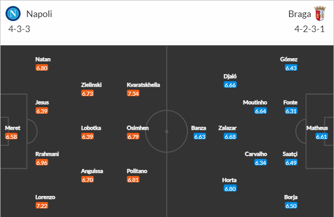 Đội hình dự kiến Napoli vs Sporting Braga: