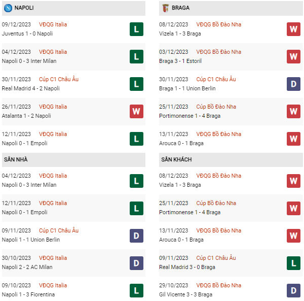 - Ở lượt đi, Napoli đã thắng 2-1 trên sân của Sporting Braga.