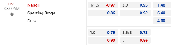 Thông tin kèo bóng đá Napoli vs Sporting Braga: