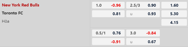 Thông tin tỷ lệ New York Red Bulls vs Toronto FC:
