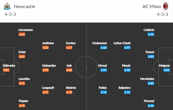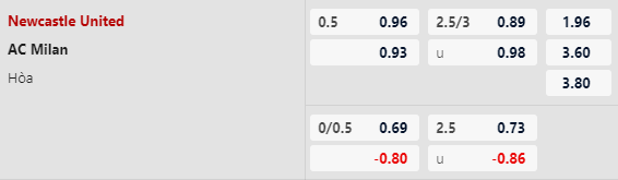Thông tin tỷ lệ bóng đá Newcastle vs AC Milan:
