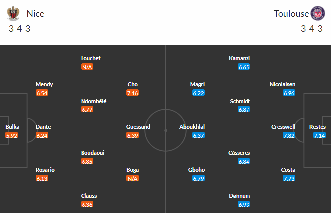 - Nice thắng 3, hòa 4, thua 3 trong 10 trận gặp Toulouse gần đây.
