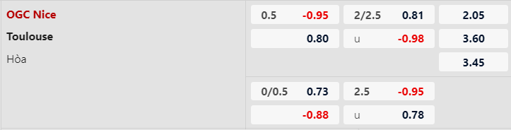 Thông tin tỷ lệ kèo Nice vs Toulouse: