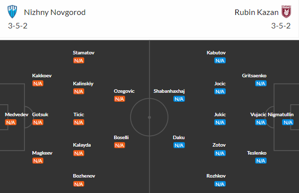 Đội hình dự kiến Nizhny Novgorod vs Rubin Kazan: