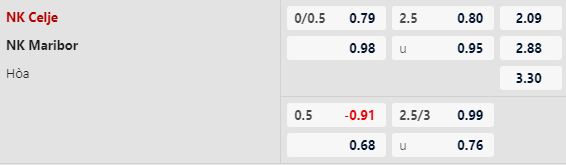 Thông tin tỷ lệ NK Celje vs Maribor:
