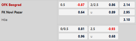 Thông tin tỷ lệ OFK Beograd vs Novi Pazar: