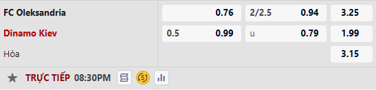 Thông tin tỷ lệ Oleksandriya vs Dynamo Kiev: