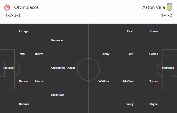 Đội hình dự kiến Olympiacos vs Aston Villa: