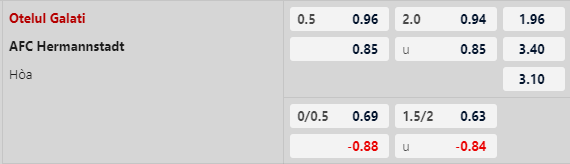 Thông tin tỷ lệ Otelul Galati vs Hermannstadt: