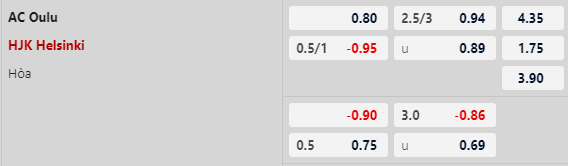 Thông tin tỷ lệ Oulu vs HJK Helsinki: