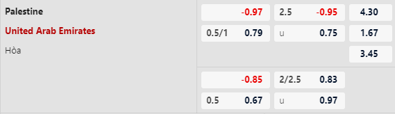 Thông tin tỷ lệ kèo Palestine vs UAE: