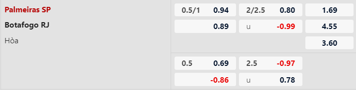 5/7 trận gần nhất của Palmeiras kết thúc với chỉ tối đa 2 bàn được ghi. Với việc Botafogo chủ động chơi chậm và phòng ngự và kèo tài xỉu chỉ ở mức thấp 2 1/4, khả năng tưng bừng bàn thắng ở trận này là không nhiều.