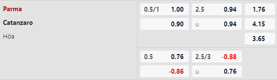 Thông tin tỷ lệ Parma vs Catanzaro: