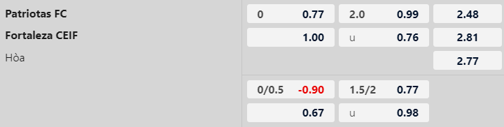 Thông tin tỷ lệ Patriotas vs Fortaleza CEIF: