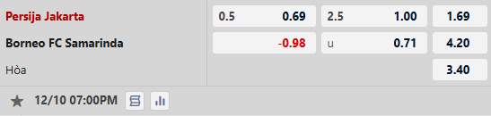 Thông tin tỷ lệ Persija Jakarta vs Borneo: