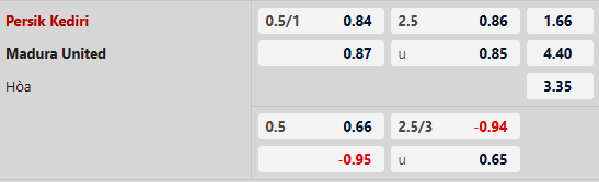 Thông tin tỷ lệ Persik Kediri vs Madura United: