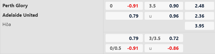 Thông tin tỷ lệ Perth Glory vs Adelaide United: