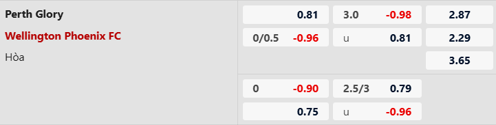 Thông tin tỷ lệ Perth Glory vs Wellington Phoenix: