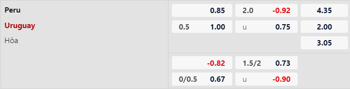Thông tin tỷ lệ bóng đá Peru vs Uruguay: