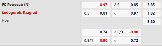 Thông tin tỷ lệ kèo Petrocub vs Ludogorets: