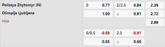 Thông tin tỷ lệ Polissya vs Olimpija: