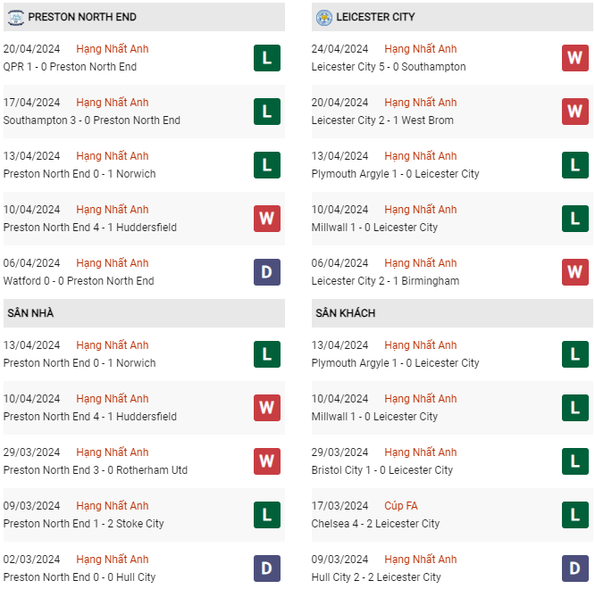 - Trên sân nhà, Preston thắng 2, thua 3 trước Leicester.