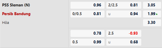 Thông tin tỷ lệ PSS Sleman vs Persib Bandung: