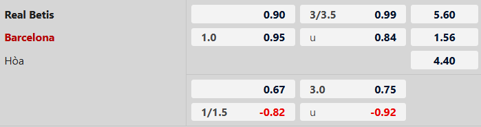Thông tin tỷ lệ kèo bóng đá Real Betis vs Barcelona: